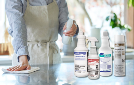 As well as kitchen cleaners and bathroom cleaners, Diversey offers glass cleaners, wipes, dish soap, and all-purpose cleaners.