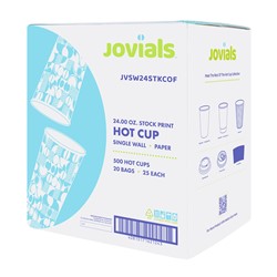 Jovials Paper Single Wall Hot Cup, Coffee Stock Print, 24 oz